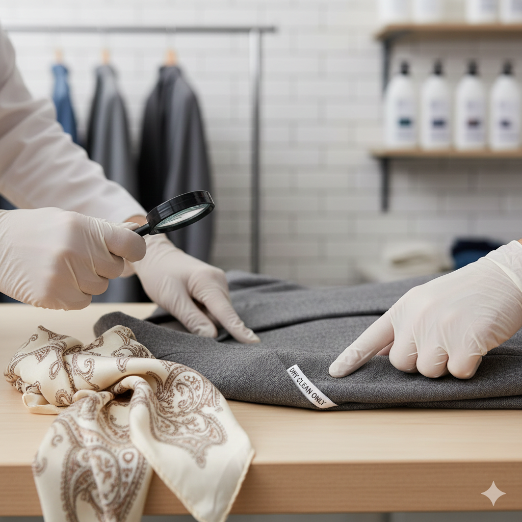 Each garment is checked for fabric type, care labels, and heat sensitivity to ensure the correct steam and temperature settings.